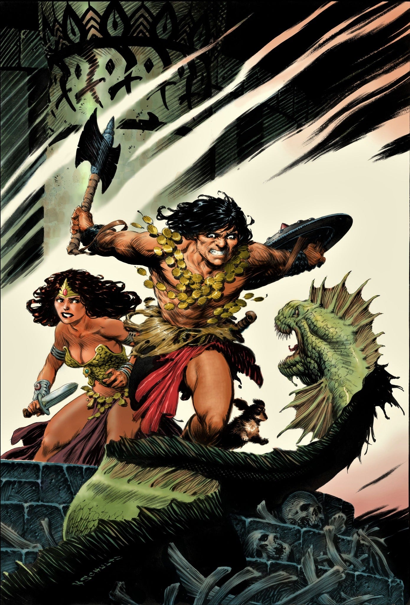 Mark's illustrations of Conan over the years have been incredibly iconic and powerful. I'm blown away that he created a new piece for our series launch (and even included the comic shop owner’s dog in there too :D ).