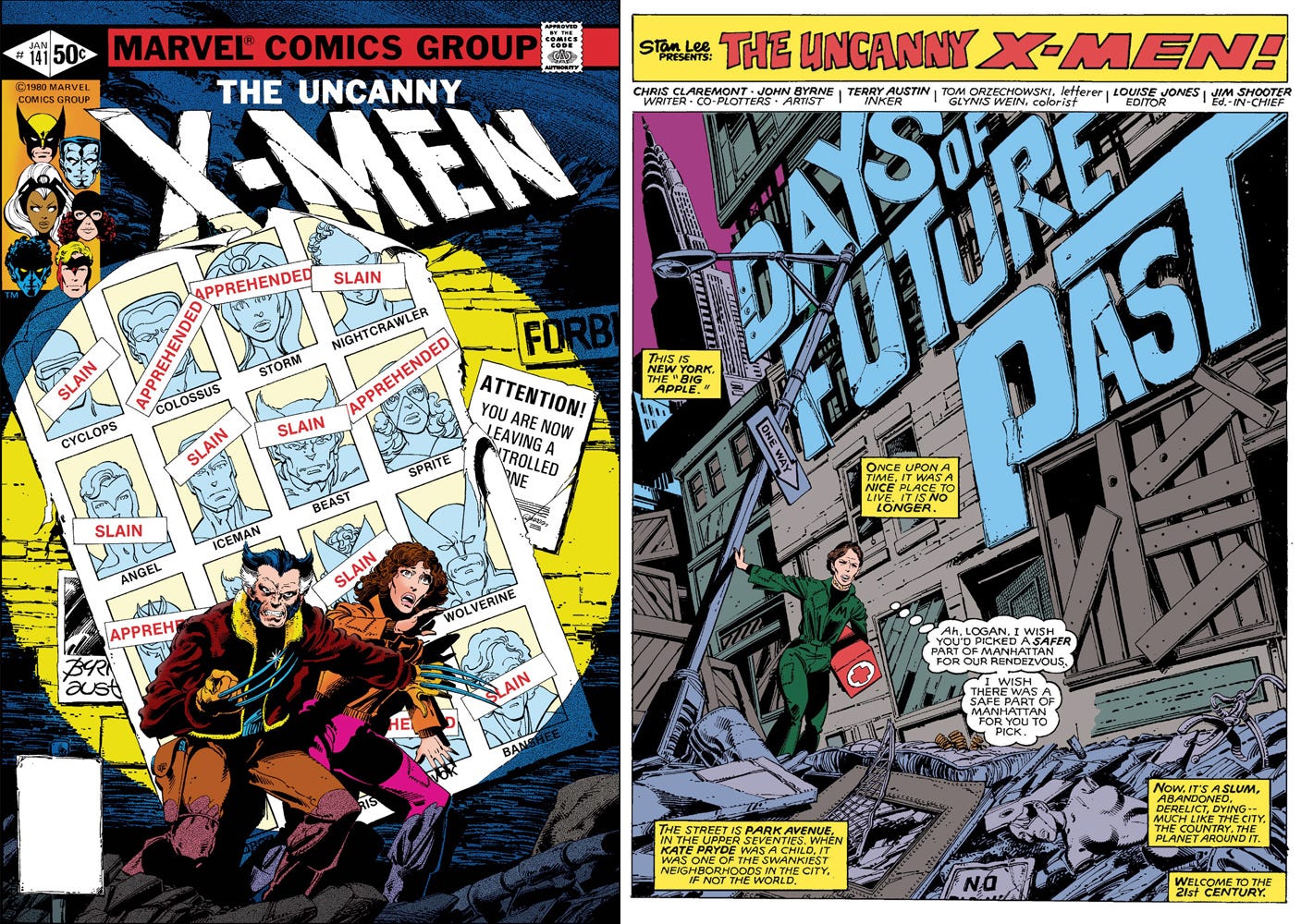 Uncanny X-Men #141, first part of the legendary “Days of Future Past” story. As far as I remember, my older brother bought it from a used bookstore in Oshawa that sold comics. The issue was released in late 1980, but I think Joe bought it a couple years later because I must have been 7 or 8 years old at the time.