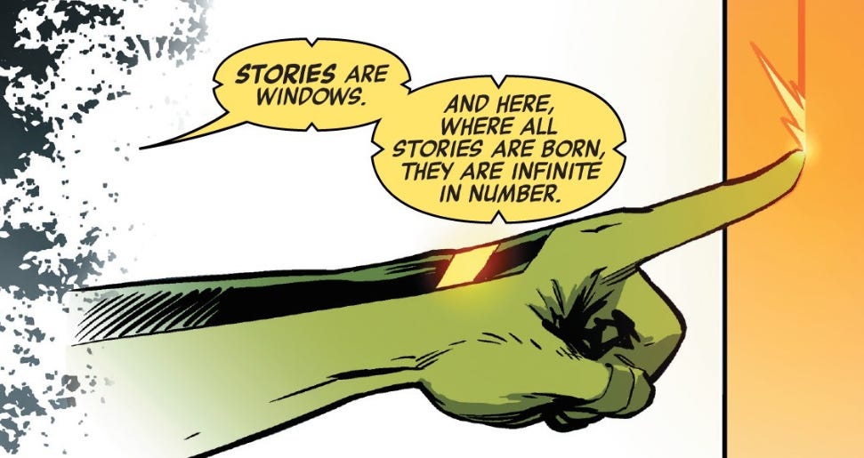At the time I thought it could be a way to explain Wanda’s reality-bending abilities, but it never quite found its way into the final published story. Could it come up again at some future point? Sure, and I’d be happy to write that story, but until then it’s just material left on the cutting room floor.